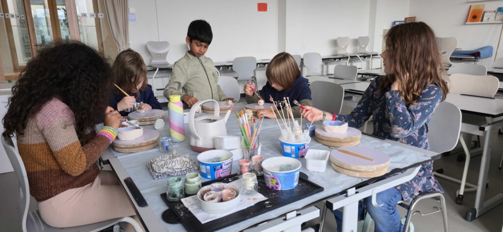 Die kreative Seite wurde besonders gefördert: Die Kinder gestalteten Halloween-Monster, die die Räume mit fantastischen Kunstwerken schmückten. Zudem setzten sie sich mit Bohnenkunst auseinander und erschufen beeindruckende Bilder, die ihre kreative Ausdruckskraft unter Beweis stellten. Ein weiteres Highlight war der Besuch im Planetarium, bei dem die Kinder eine spannende Reise durch das Universum unternahmen und dabei sowohl naturwissenschaftliche Themen als auch das Staunen über das Weltall erfuhren. Im Technikmuseum konnten die Kinder an aufregenden Experimenten teilnehmen, was ihre Neugier und ihr Interesse an Technik und Naturwissenschaften förderte. Und zu guter Letzt: Beim Töpfern wurden kreative Kunstwerke aus Ton geformt – ein tolles Beispiel für die Förderung von Feinmotorik und künstlerischem Ausdruck.
